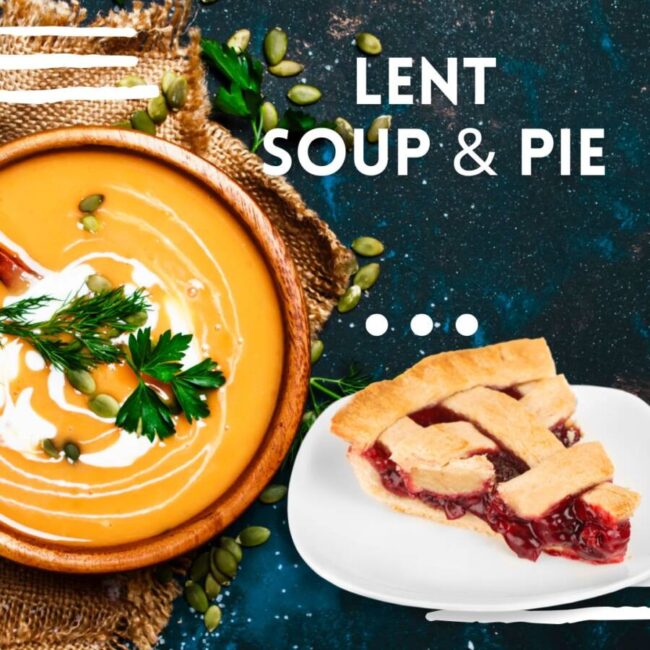 Lenten Soup & Pie starts 2/18 HomeBy SueFebruary 3, 2026Lenten Soup and Pie starts February 18th at 11:00am.