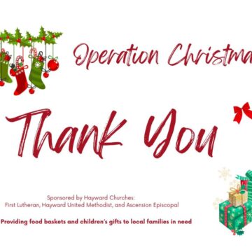 Operation Christmas: Blessings and thank you to all who have contributed to this important ministry helping 240 families this holiday season. Thank you to the cookie bakers who were so generous filling boxes delivered to 60 people who are homebound or in a care center. Almost 1,000 people in our community have benefited from this…