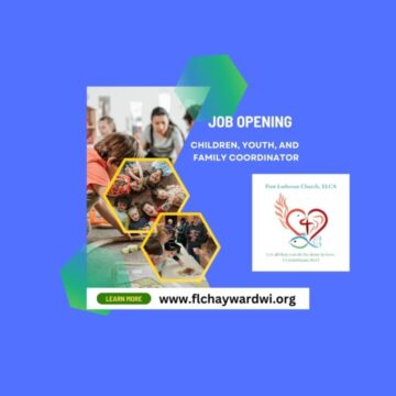 JOIN OUR TEAM: Children, Youth & Family (CYF) Coordinator Job Opening First Lutheran Church in Hayward, WI is growing and seeking a passionate and creative CYF Coordinator. This role focuses on partnership with existing congregational ministries to foster faith formation through engaging outreach activities and also build intergenerational relationships. The ideal candidate will have a…